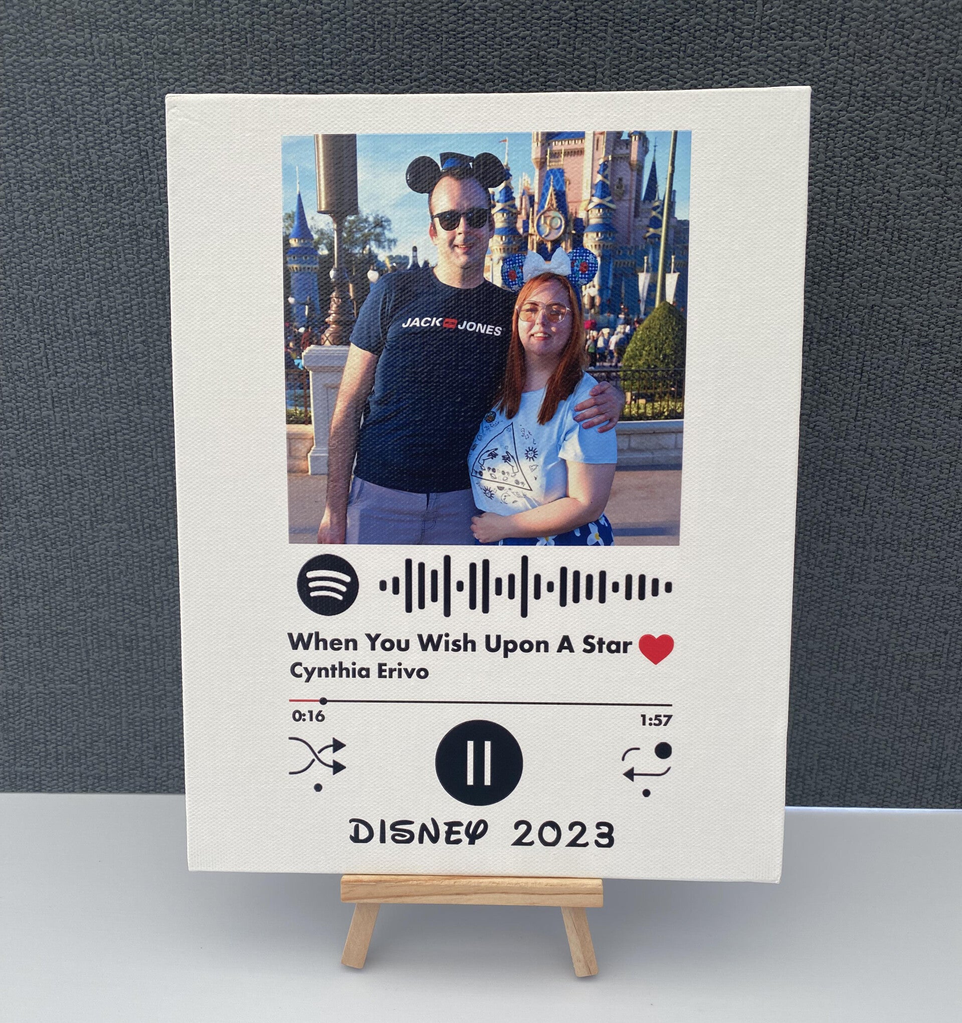 Scan the code on the canvas board with the spotify music app to instantly play the song shown on the board